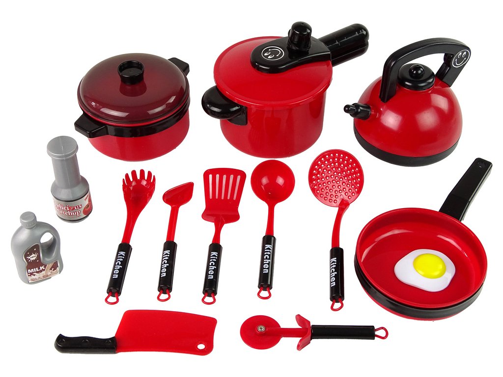 - Sada hrnců a kuchyňských doplňků červená Hra na domácnost je jednou z nejoblíbenějších zábav dětí