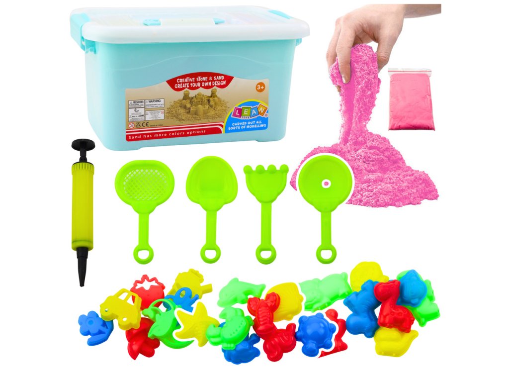 Sada Magický Písek Růžový 3kg Formičky Nástroje Nafukovací Deska