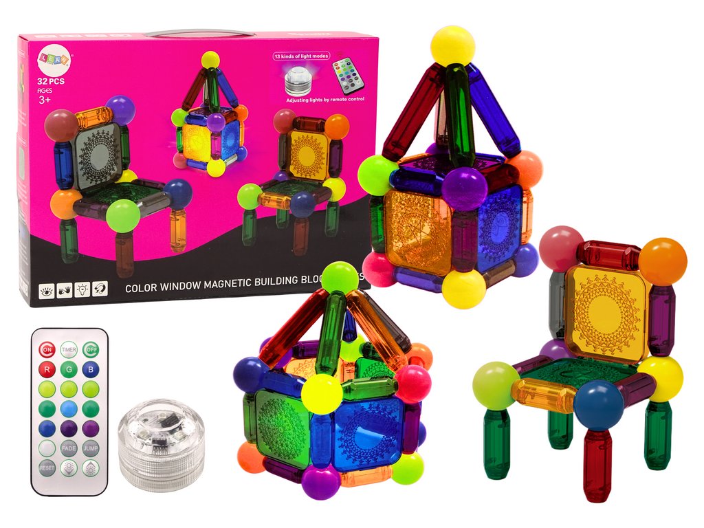 Sada magnetických kostek s podsvícením, 32 dílů Sada magnetických kostek je velmi univerzální hračka, která nejenže zajistí hodiny zábavy, ale také rozvíjí mnoho důležitých dovedností u dětí.