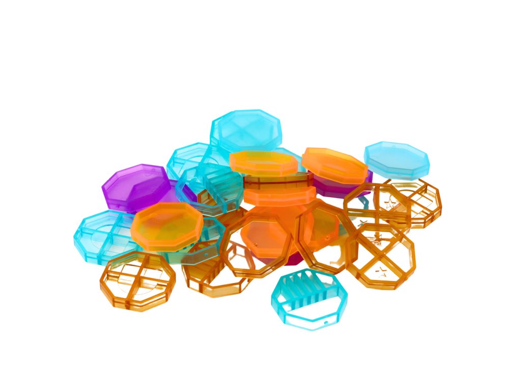 Kostky jsou vyrobeny z pevného a bezpečného plastu, zatímco zabudované magnety zajišťují snadné a pevné spojení jednotlivých prvků. Jejich průhledná a živá barevnost spolu s různými tvary pozitivně ovlivňují rozvoj prostorové představivosti, manuálních schopností a logického myšlení. Děti se učí rozpoznávat barvy, analyzovat tvary, plánovat prostorově a řešit stavební problémy.