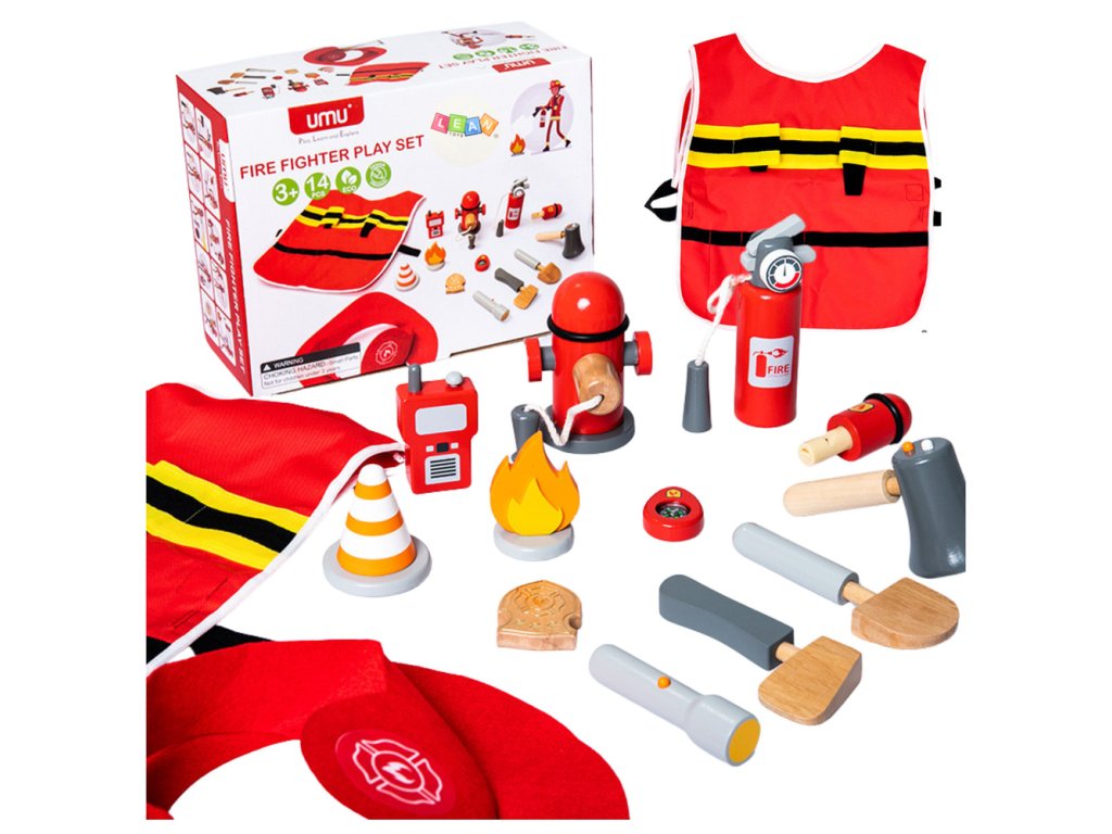 Sada Malého Hasiče Kostým Hasičské Doplňky Dřevo 14 ks