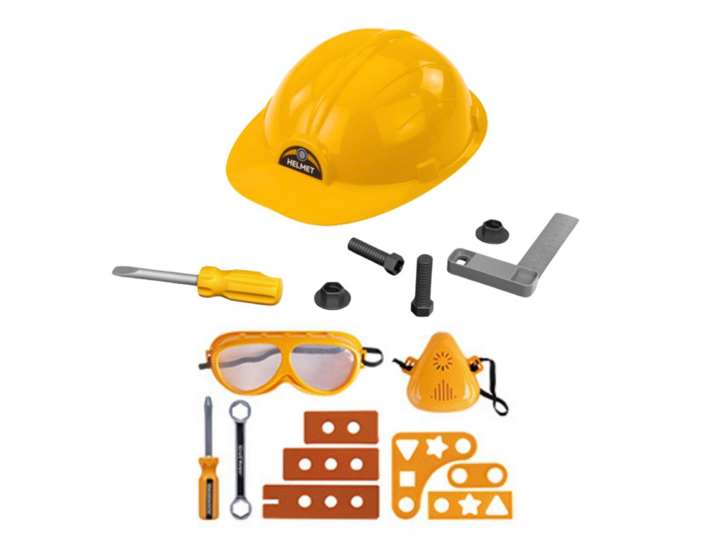 Součástí sady je mimo jiné interaktivní pneumatické kladivo na baterie, bezpečnostní přilba, ochranné brýle, maska, jakož i šroubováky, klíč, úhloměr, montážní prvky, šrouby a matice tedy vše potřebné pro bezpečnou a kreativní hru na stavbu
