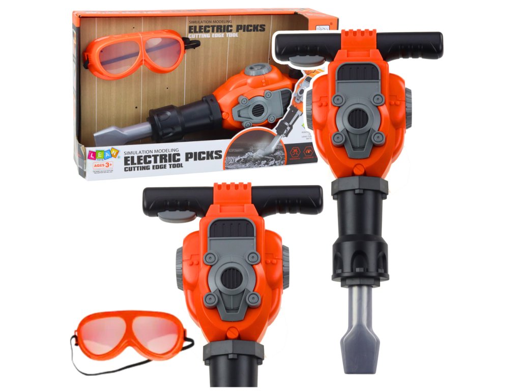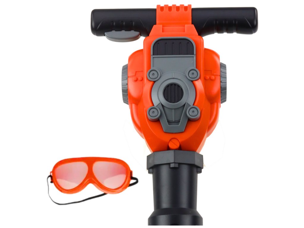 Zábavné pneumatické kladivo s ochrannými brýlemi je skvělým dárkem pro děti, které rády sledují dospělé při práci a chtějí si hrát na malé kutilce Tento realisticky vypadající set v oranžové barvě umožňuje kreativní a bezpečnou hru, která rozvíjí představivost a manuální dovednosti
