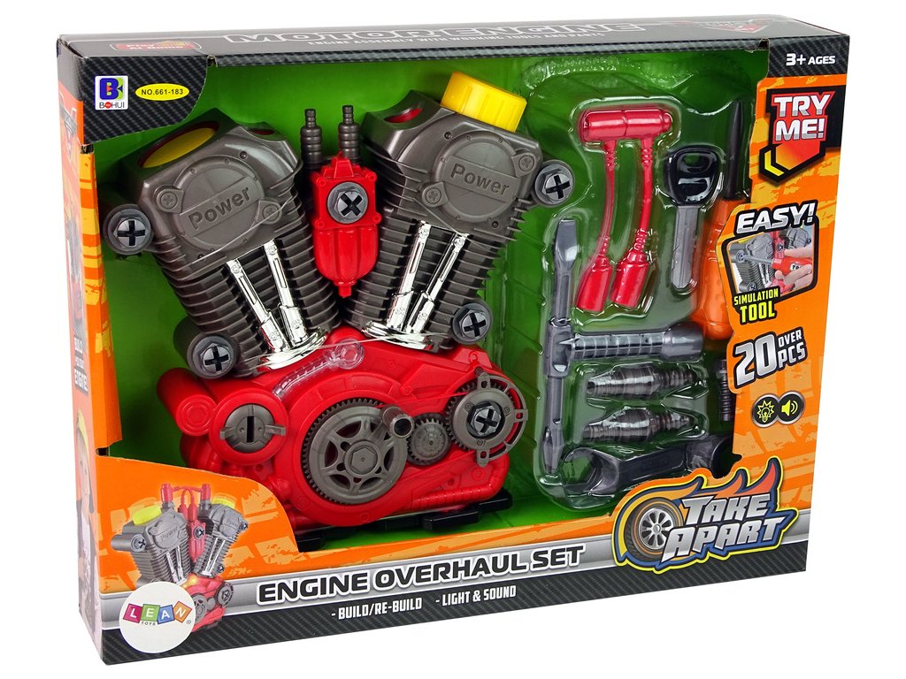 Hračka určená pro malé automechaniky Skvěle rozvíjí manuální dovednosti a seznamuje dítě s prvky skutečných motorů