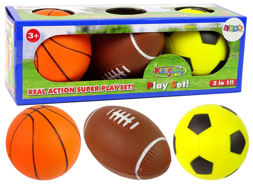 Sada měkkých sportovních míčů 3v1 fotbalový míč, basketbalový míč Míče jsou hračky, které milují všechny děti Je to velmi pozitivní jev, protože hraní s nimi má vliv na udržení dobré kondice a také zaručuje dítěti správnou dávku pohybu