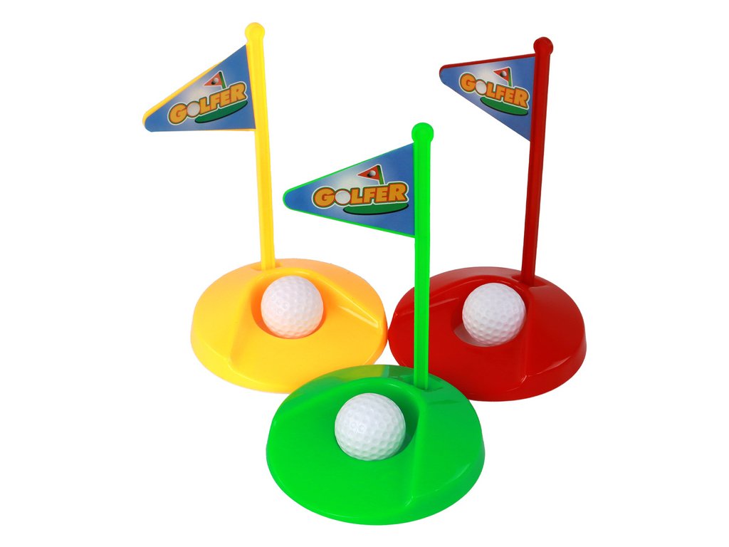 - Sada Mini Golf pro Děti 12 ks nabízí vše, co potřebujete k perfektní hře: tři kreativně navržené golfové hole, tři barevné jamky a míčky