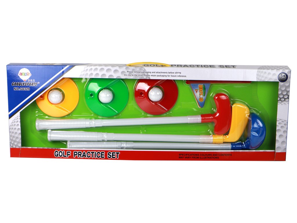 - Součástí jsou také 3 golfové jamky ve zelené, červené a žluté barvě jako cíle pro zasažení
