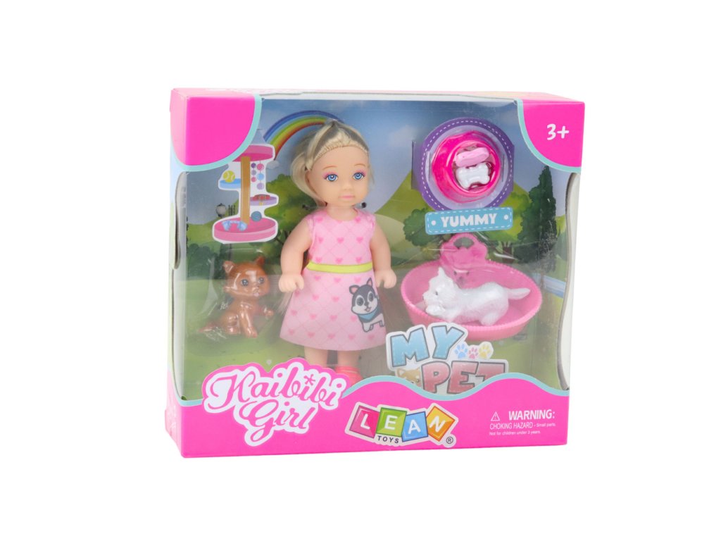 MINI PANENKA S PEJSKEM A KOČIČKOU a příslušenstvím pro zvířátka je roztomilou volbou pro nejmladší, která podněcuje k hraní na péči o zvířátka.