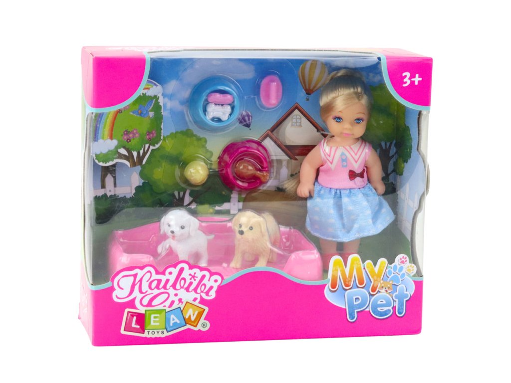 - S panenkou o výšce 12 cm oblečenou ve stylových šatech a dvěma rozkošnými pejsky si děti mohou vytvořit vlastní scénáře péče o mazlíčky!
