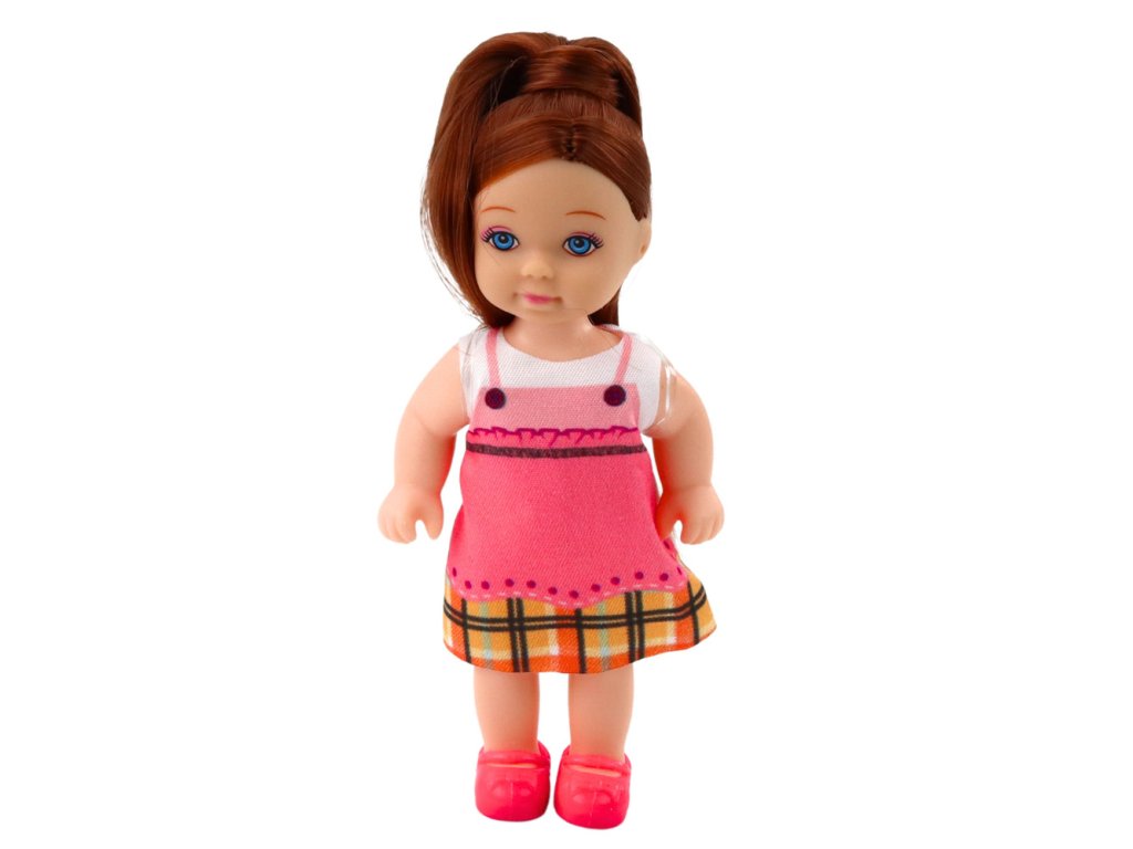 Mini Panenka se dvěma Štěňátky je rozkošný set, který zve děti do světa péče, her a starostlivosti o zvířata Hlavní postavou je panenka vysoká 12 cm, oblečená v růžových šatičkách s módním vzorem v kostce dole