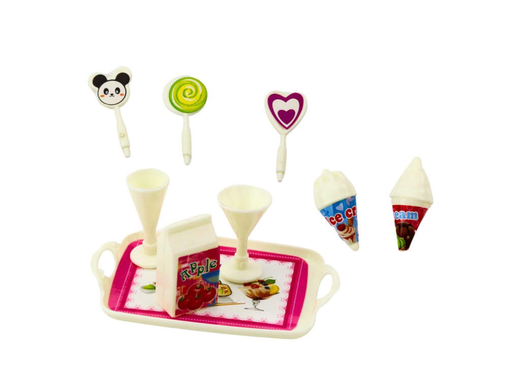 - lízátka, zmrzliny, kornouty a tác s občerstvením, které nejen obohacují zábavu, ale také podporují rozvoj představivosti, manuálních dovedností a společenských schopností dítěte