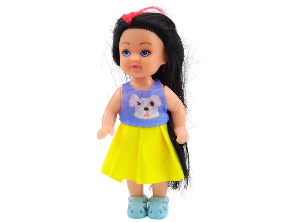 - V sadě je panenka o výšce 12 cm, oblečená v pestrobarevných šatech s potiskem sympatického pejska, a také dva roztomilí štěňátka
