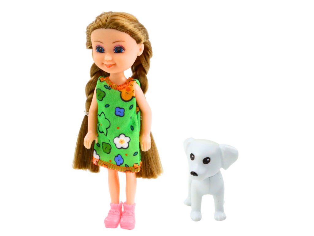 Sada panenka s pejskem 14,5 cm je půvabná hračka, která je ideální pro děti, které si rády hrají a představují si každodenní příběhy o péči o své malé kamarády