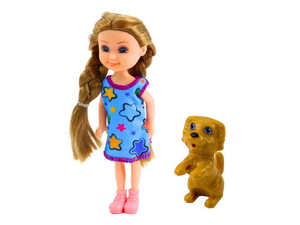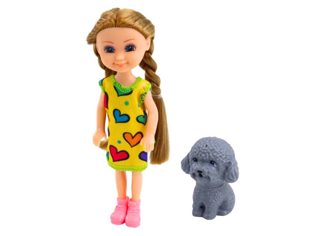 Sada panenka s pejskem - 14,5 cm je půvabná hračka, která je ideální pro děti, které si rády hrají a představují si každodenní příběhy o péči o své malé kamarády.