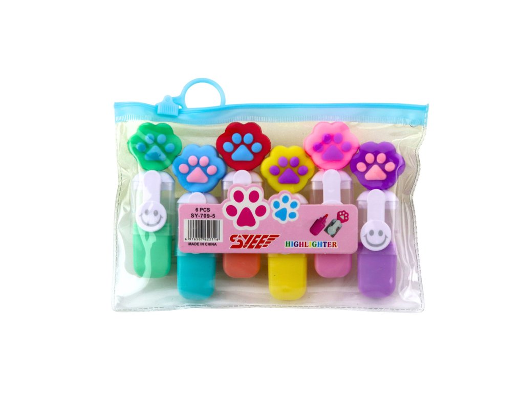Sada Mini Zvýrazňovače S Tlapkou V Pouzdru Barevné 6ks 8cm