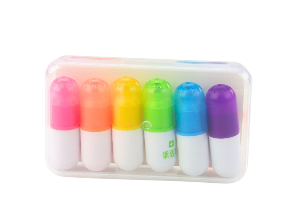 Sada obsahuje 6 kusů zvýrazňovačů v intenzivních barvách, které jsou ideální pro zvýrazňování důležitých informací v poznámkách, knihách nebo dokumentech Zvýrazňovače mají kompaktní rozměry 5,5 x 2 cm, což jim umožňuje vejít se do každého penálu, kosmetické taštičky nebo organizéru