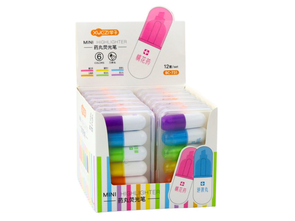 - Zvýrazňovače mají kompaktní rozměry 5,5 x 2 cm, což jim umožňuje vejít se do každého penálu, kosmetické taštičky nebo organizéru