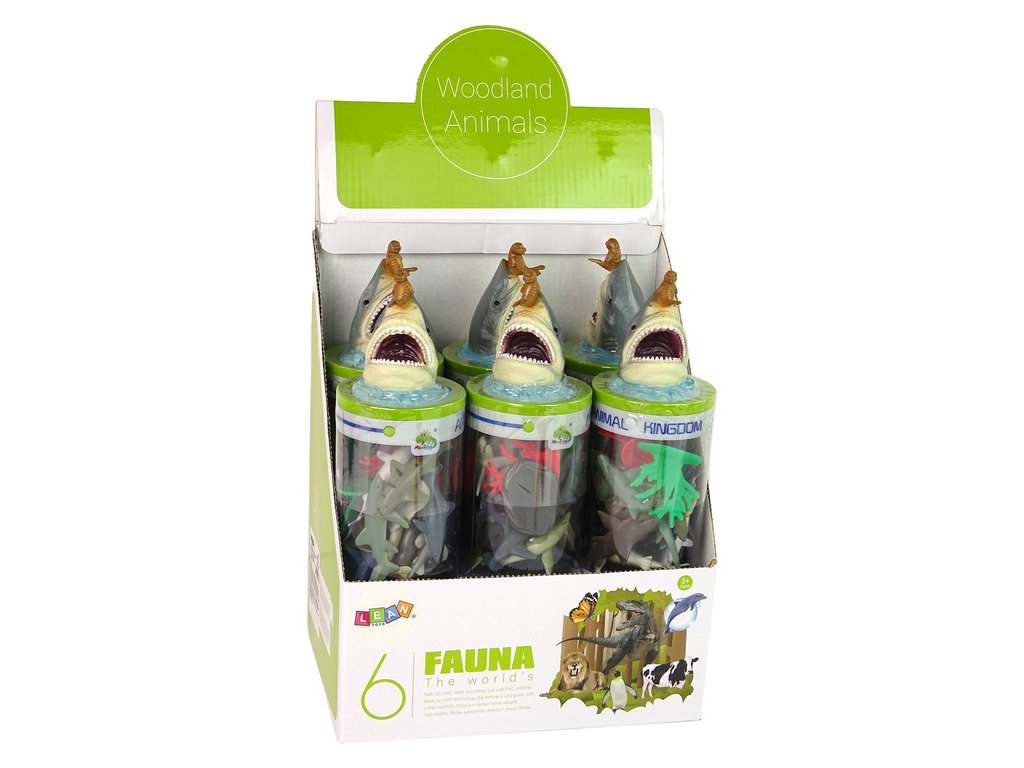- Sada obsahuje 12 figurek, všechny jsou zabaleny v dlouhé tubě s obrázkem hlavy žraloka