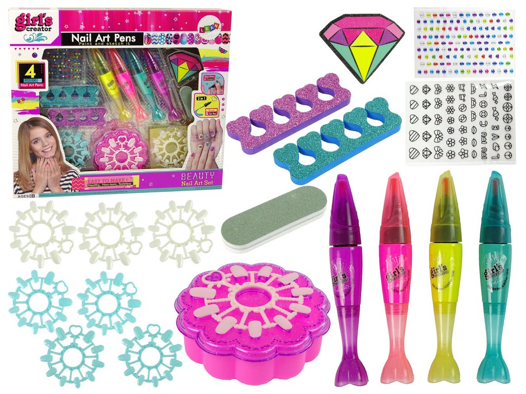 - Sada na lakování nehtů Lakové fixy Barevné samolepky Holčičky už od útlého věku se snaží zkrášlovat pomocí doplňků k oblečení, gadgetů, zdobení nehtů nebo vlasů