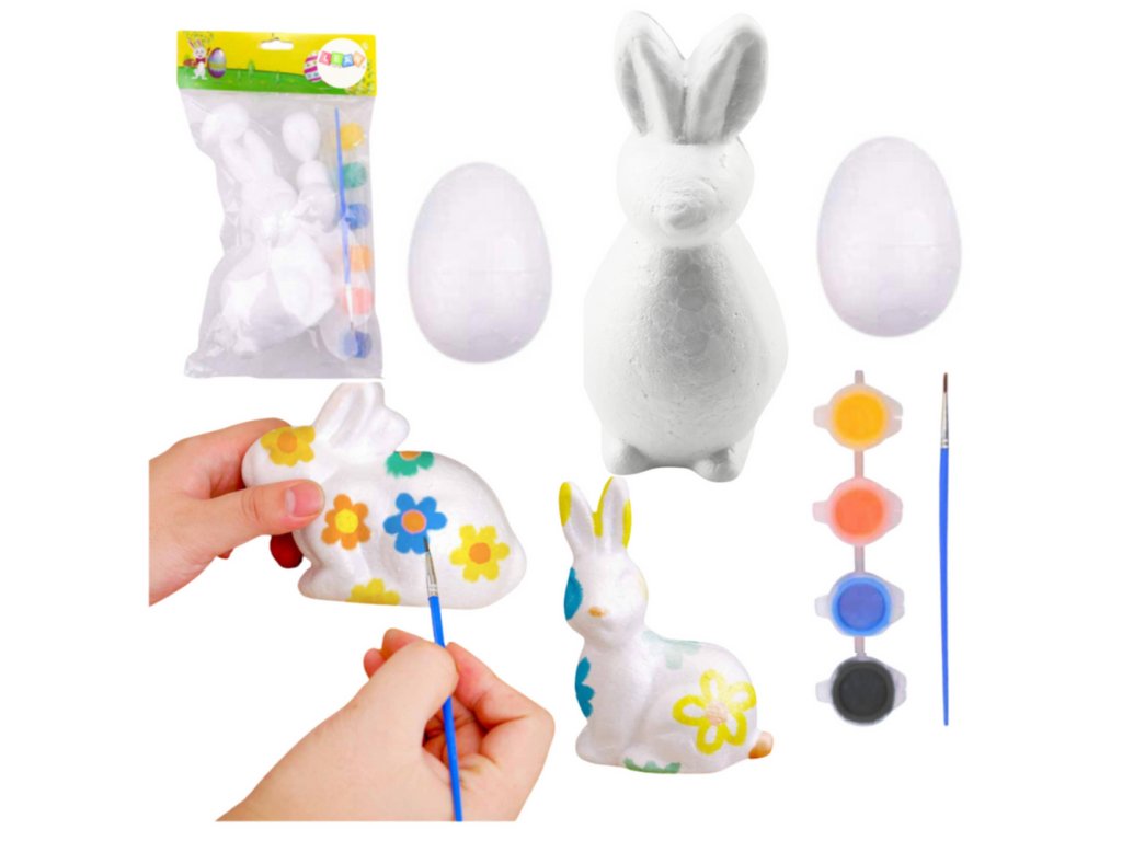 Sada na Malování Pěnových Ozdob Zajíc a 2 Vajíčka s Barvami