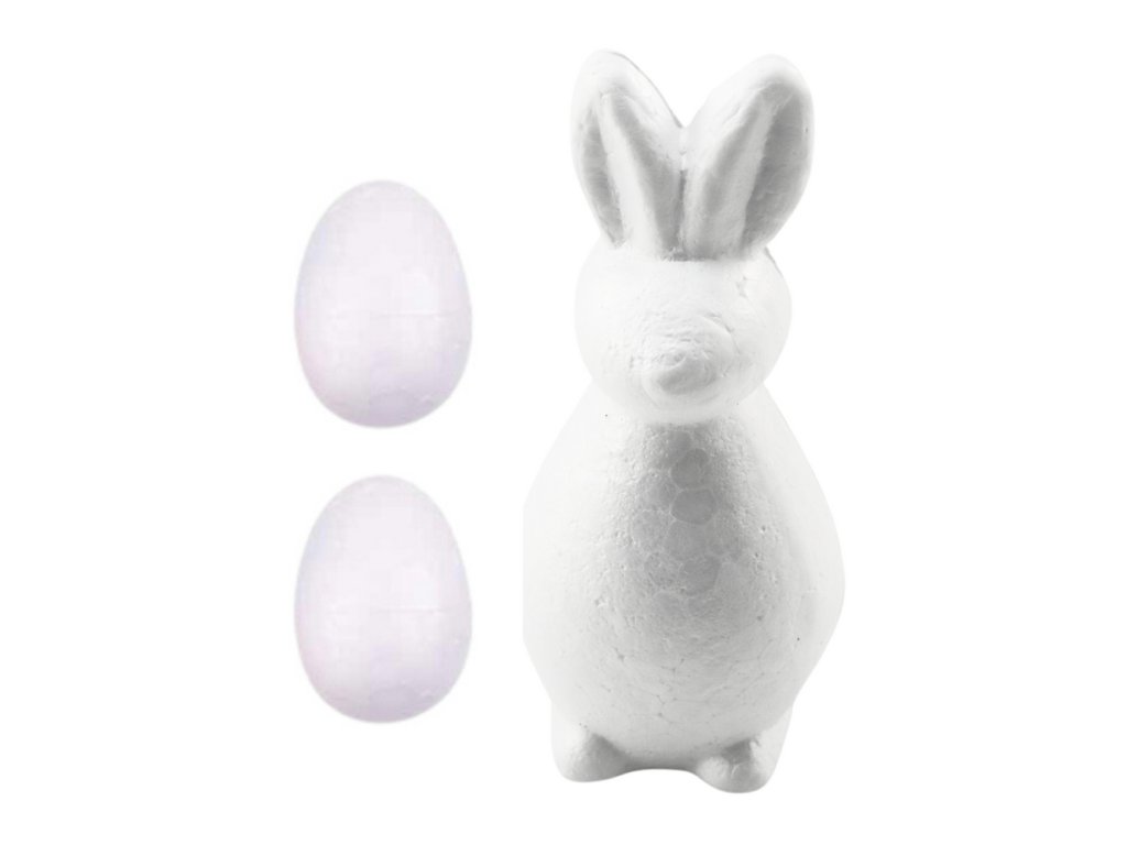 - V sadě najdete pěnového zajíce, dvě polystyrenová vejce