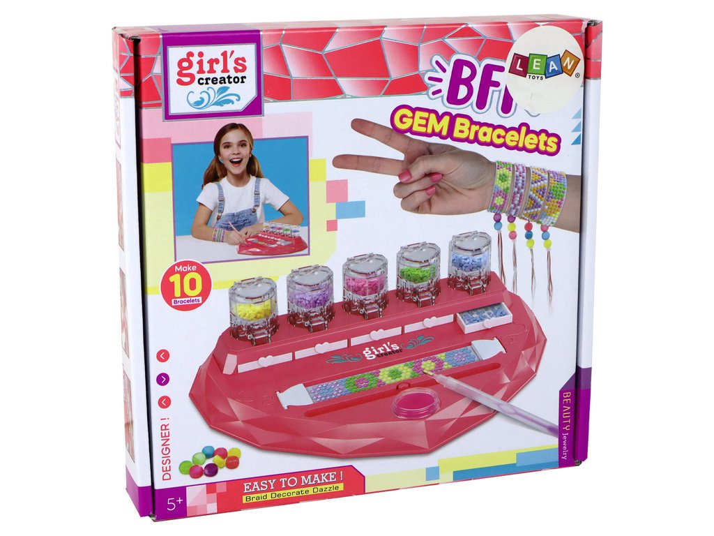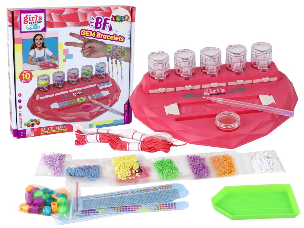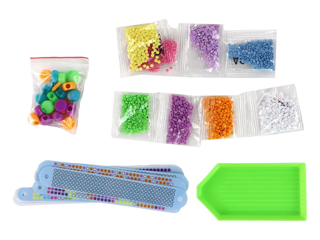 - Nabízí nejen 10 různých vzorů náramků a diamantky pro třpytivé výsledky, ale také znamenitý způsob, jak podpořit kreativitu a manuální zručnost