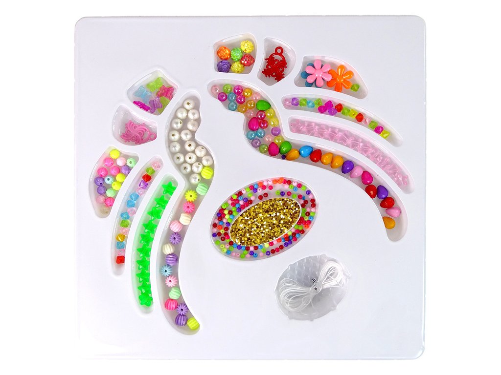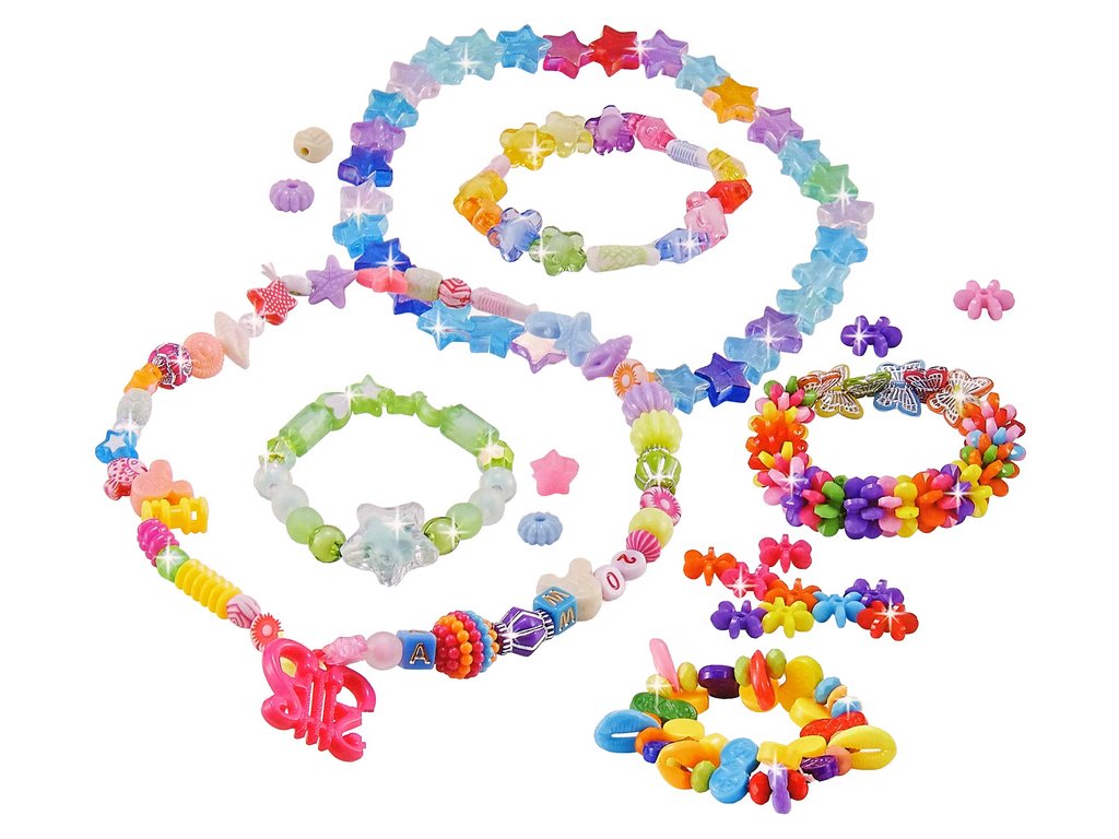 - Sada se skládá z nejrůznějších korálků ve tvaru květinek, perliček, hvězdiček nebo diamantů