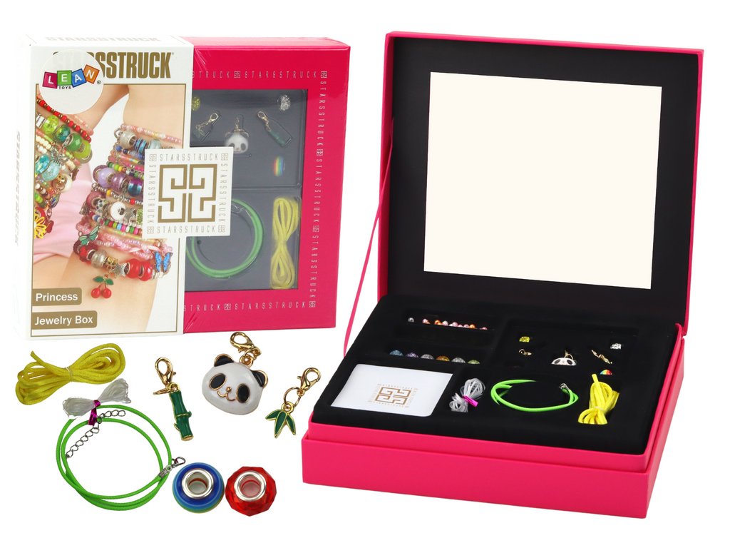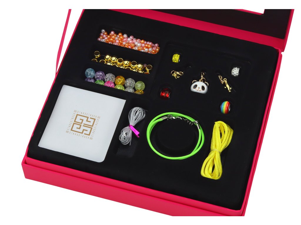 - Elegantní **růžová krabička** pro bezpečné uložení a darování Nejen že vaše dítě bude moci vytvářet osobité **šperky**, ale zároveň bude rozvíjet svou **manuální zručnost** a posilovat **smysl pro estetiku**