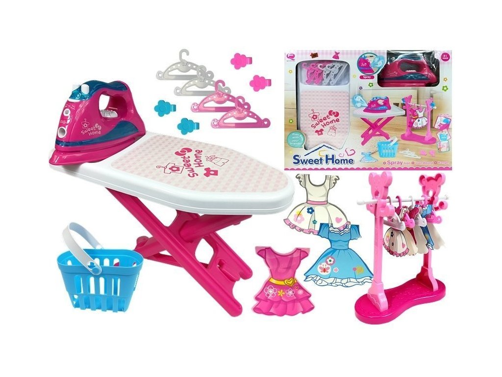 - Růžová žehlička, žehlící prkno a ramínka Několik let staré holčičky, které pozorují domácí práce, často chtějí pomáhat svým rodičům