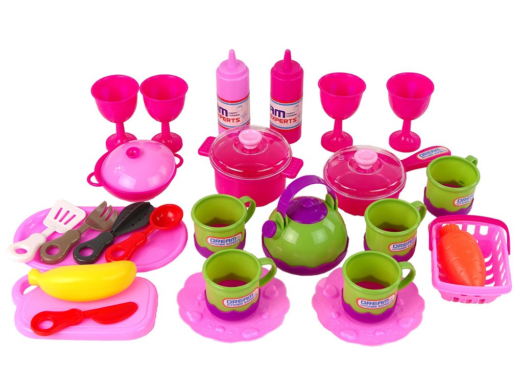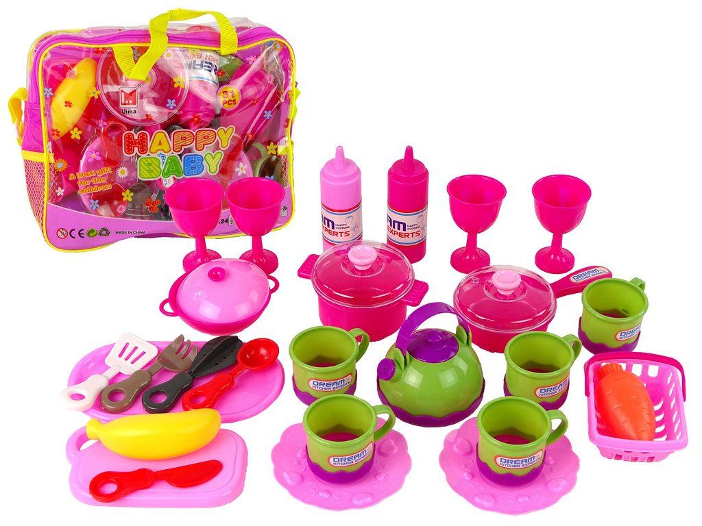 - Velká sada kuchyňských doplňků v tašce Růžová kuchyňská sada pro dívky obsahuje všechny nezbytné prvky pro hraní si na malou hospodyňku nebo organizátorku oslavy pro kamarádky, a dokonce i hračky