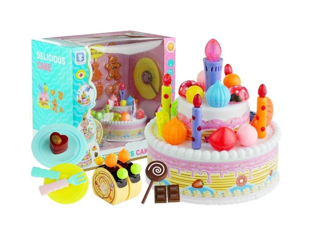 - Obsahuje velkou sadu předmětů včetně dortu, sušenek a dalších sladkostí, aby oslava byla plná emocí a fantazie