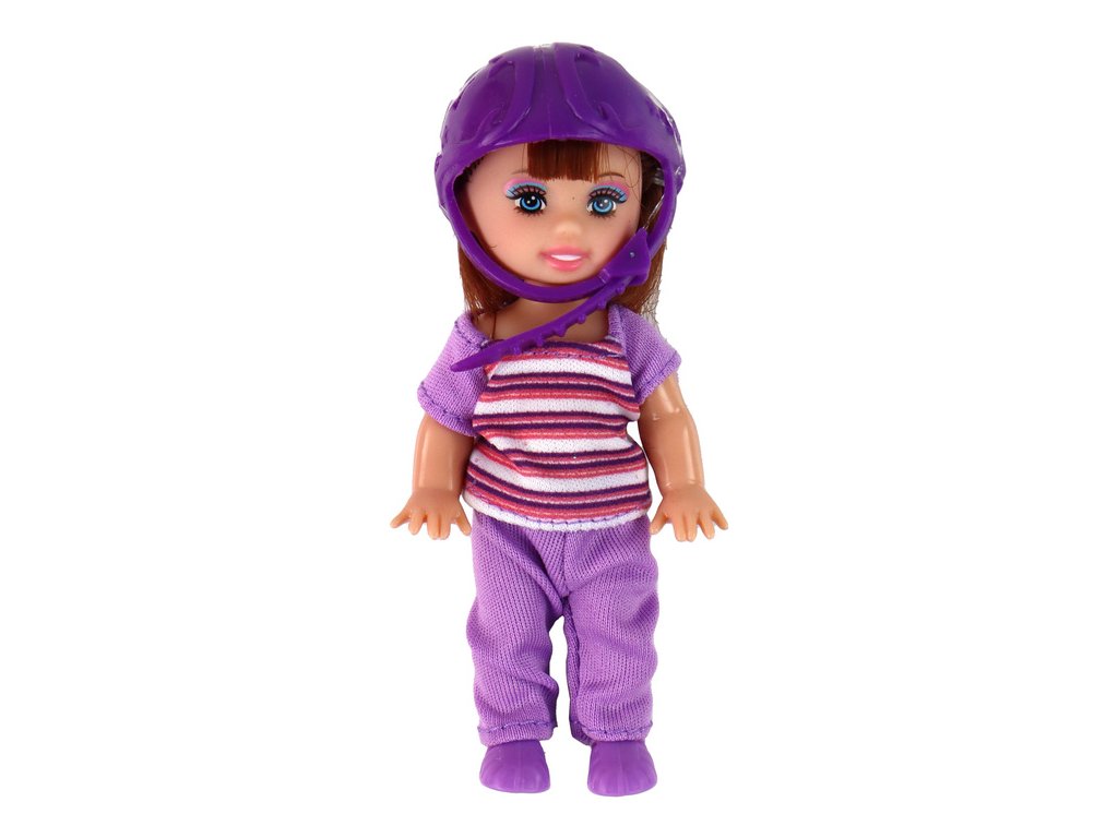 - Druhá je malá panenka v podobě dítěte s fialovou helmou na hlavě