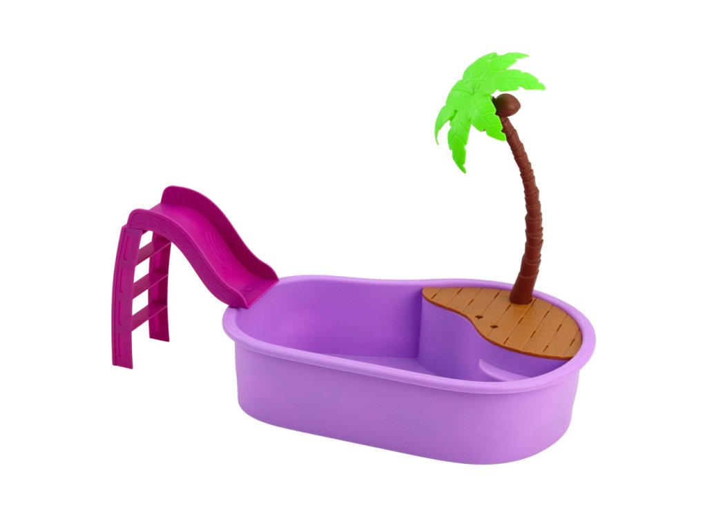- Součástí setu je bazének s palmou a skluzavkou, který přináší letní náladu do hraní a umožňuje dětem vytvářet vlastní příběhy o prázdninových večírcích, koupání či setkáních s přáteli