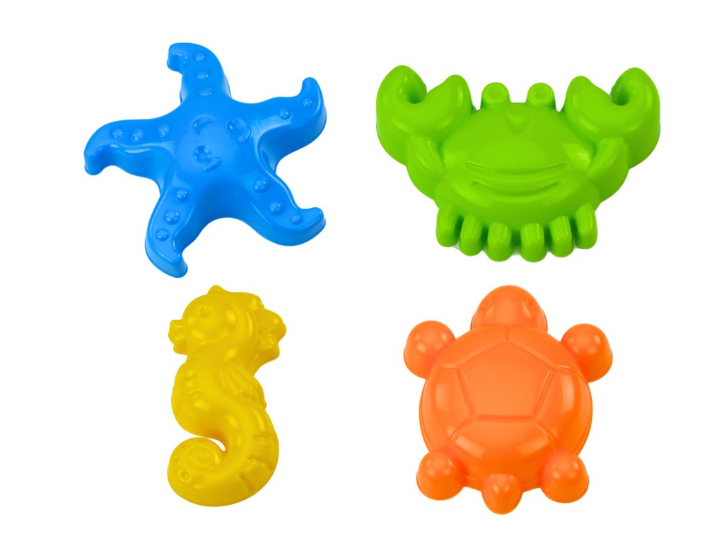 - 4 formičky ve tvaru mořských motivů: mořský koník, hvězdice, želva a krab S touto sadou mohou děti naplno rozvíjet svou fantazii a manuální dovednosti, ať už si hrají na pláži, na zahradě nebo v pískovišti