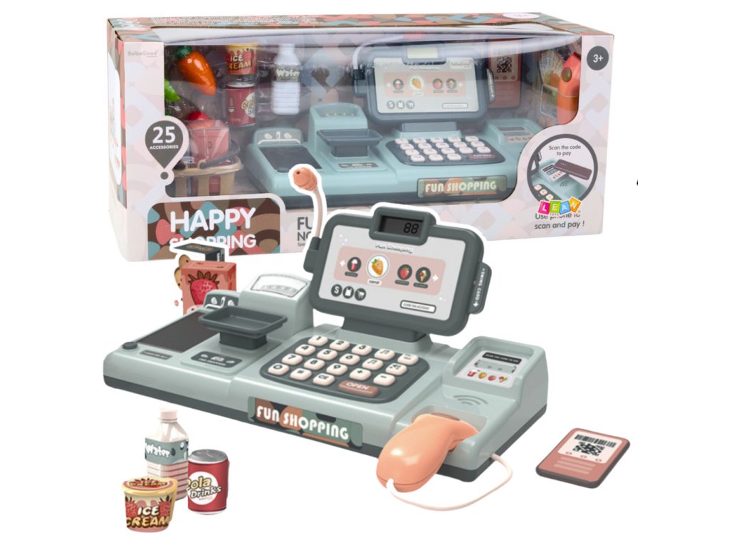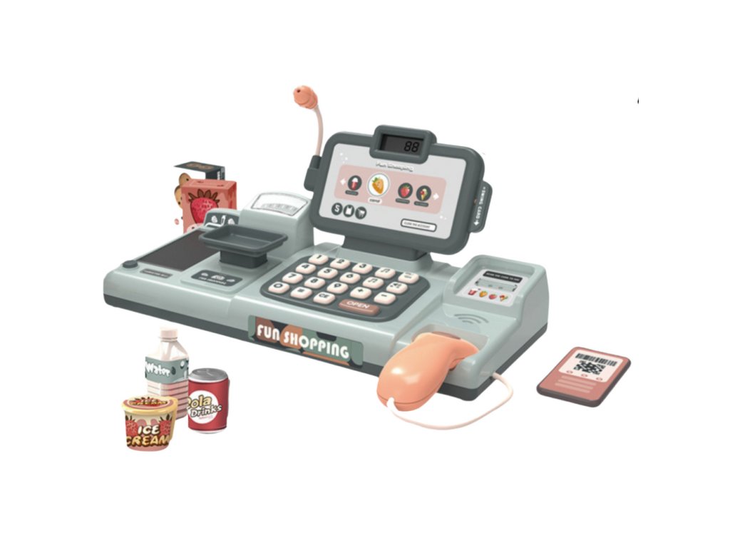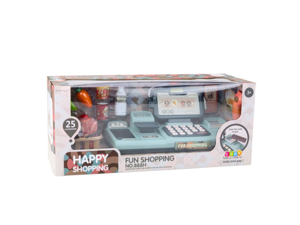 Je to vynikající nástroj pro rozvoj představivosti, učení se počítání a vyprávění každodenních scén ze života Hračka je vybavena řadou funkčních prvků, jako je elektronická váha, čtečka čárových kódů se zvukem, mikrofon, klávesnice, platební terminál, pohyblivý pás a pokladničkou na peníze