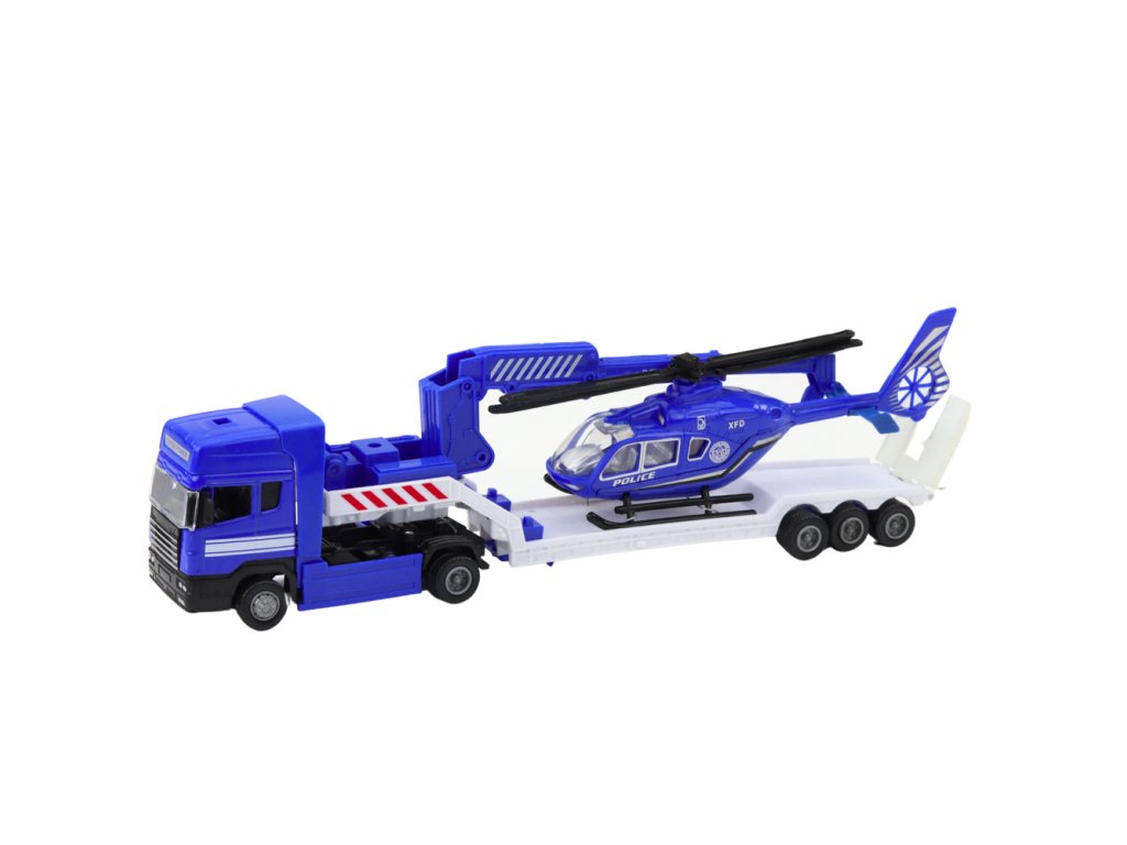 - nákladního auta s podvalem a vrtulníkem, policejního auta a vozidla s přívěsem a záchrannou lodí
