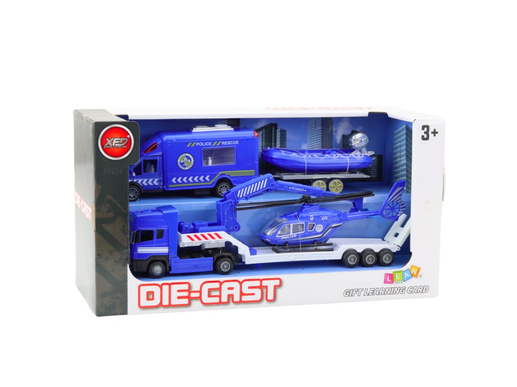 Sada policejních záchranných vozidel s frikčním pohonem je vynikající nabídkou pro děti, které milují dynamické hraní a přebírání role záchranářů Komplet se skládá z různých dopravních prostředků používaných při záchranných akcích