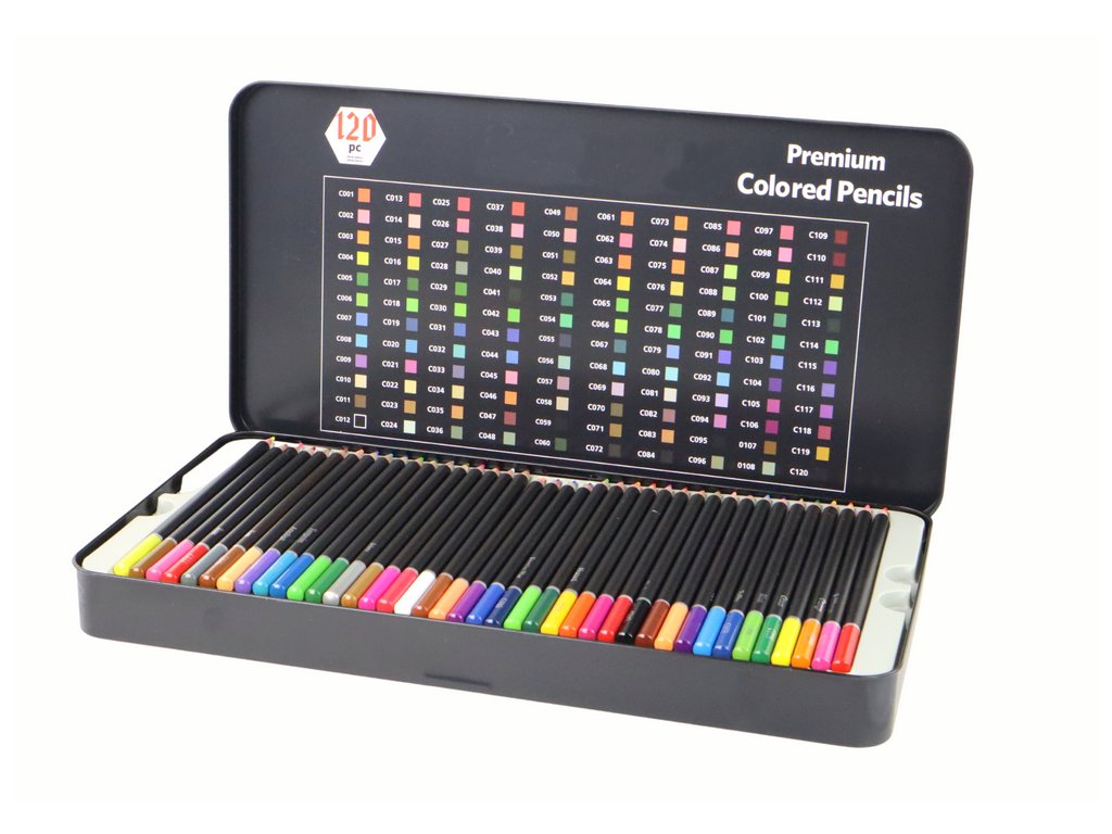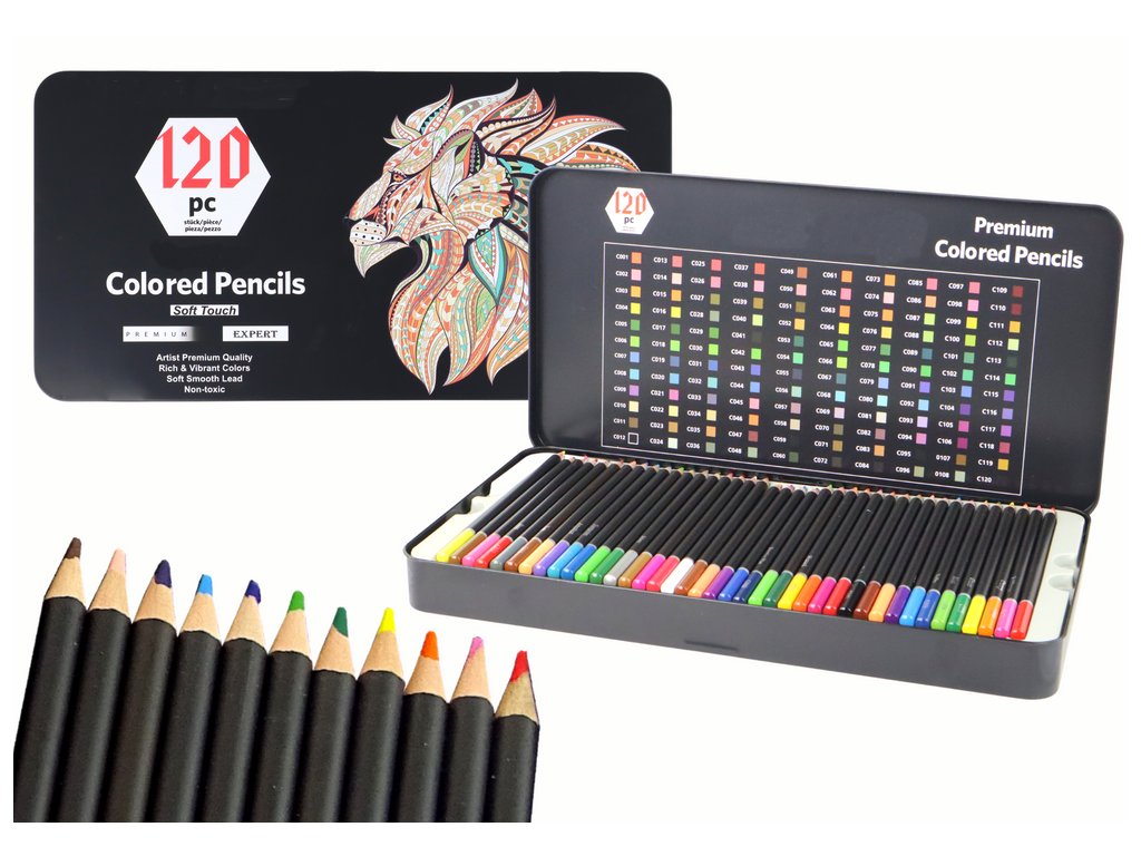 Sada prémiových pastelek 120 ks, různé odstíny, seznam barev Objevte nekonečné možnosti uměleckého vyjádření díky naší jedinečné sadě 120 prémiových pastelek v elegantním kovovém pouzdře