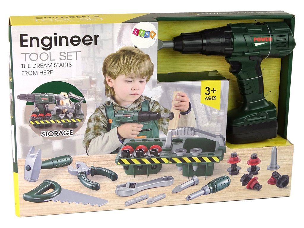 - Objevte zcela nový svět kreativní zábavy s naší Sadou pro Malého Kutila Organizer Aku Vrtačka na Baterie Zelená