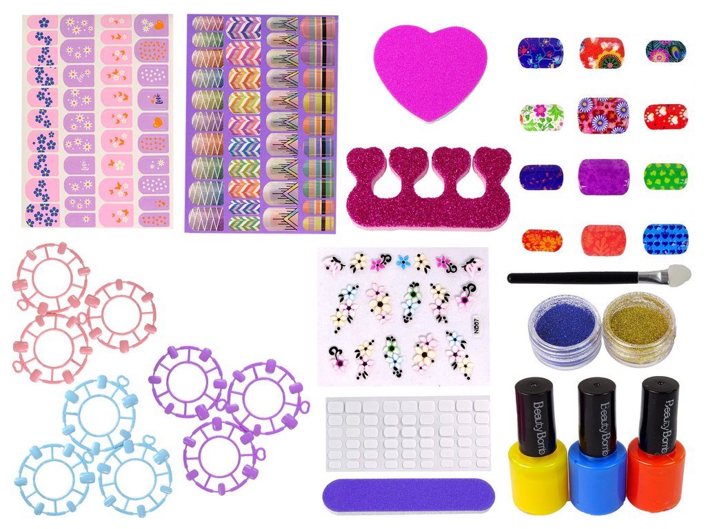 - Sada na lakování nehtů Lakové nálepky Šablony Glittery Představujeme ideální sadu na nehty, která je perfektním řešením pro všechny maminky, jejichž dcery sbírají kosmetiku a především milují laky na nehty