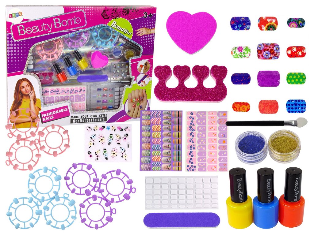 Sada na lakování nehtů Lakové nálepky Šablony Glittery Představujeme ideální sadu na nehty, která je perfektním řešením pro všechny maminky, jejichž dcery sbírají kosmetiku a především milují laky na nehty – vlastní manikúrová sada.