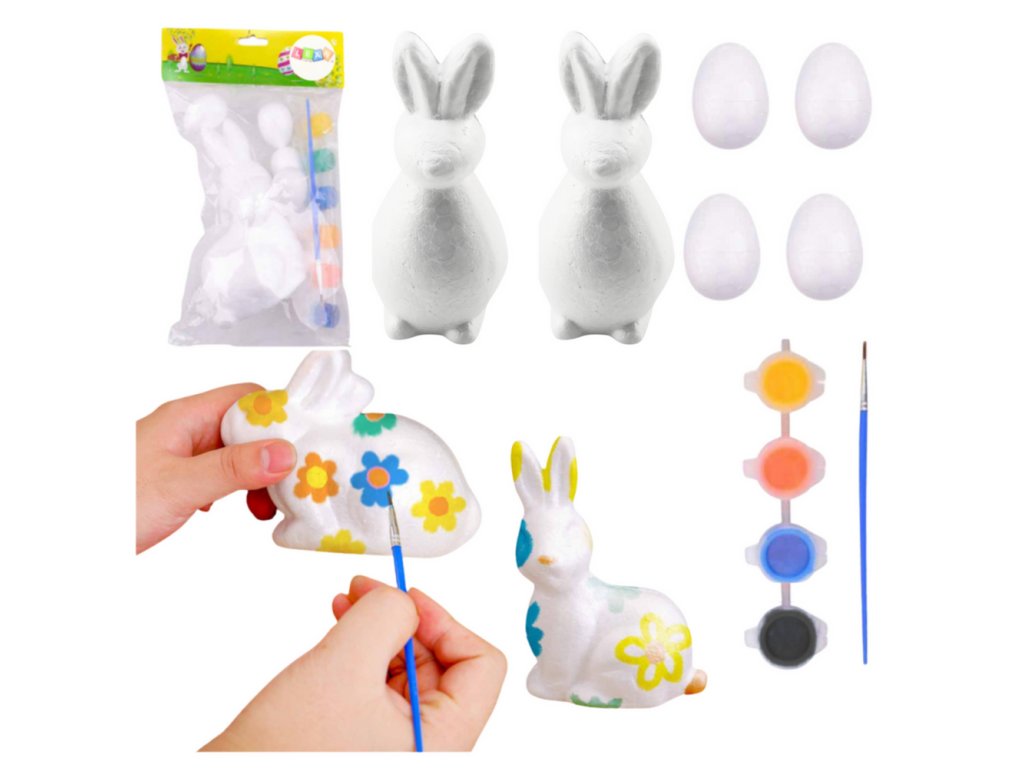 Sada pro Malování Polystyrenových Velikonočních Ozdob 2 Zajíci 4 Vejce Barvy
