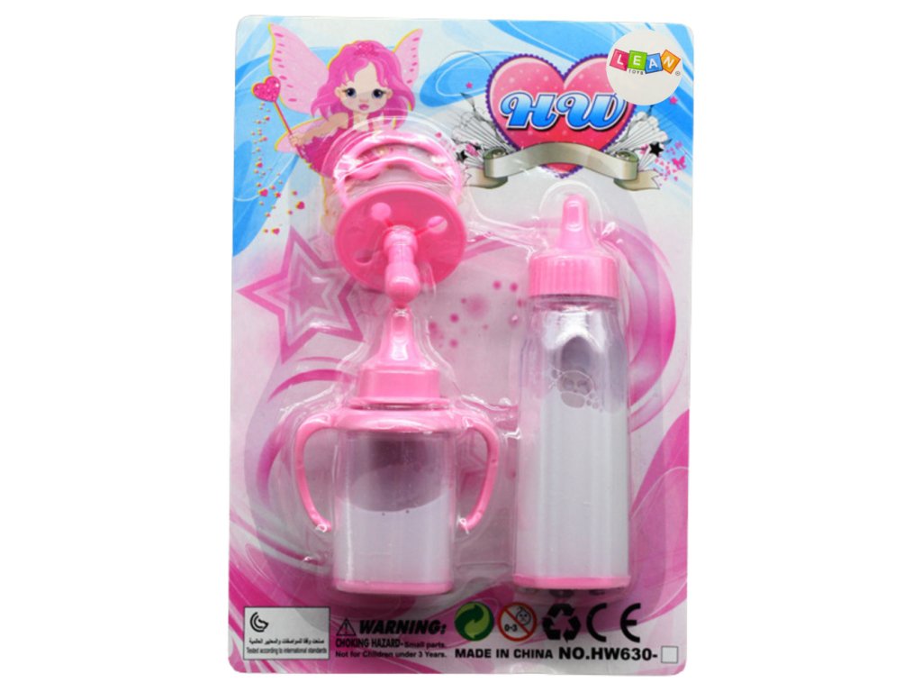 Tato sada je ideálním doplňkem pro hru na domácnost, péči a každodenní rituály spojené s péčí o miminko V balení se nacházejí dvě lahvičky různé velikosti a dudlík, přičemž všechny jsou udržovány v jemné, růžové barvě