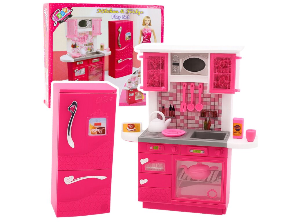Sada Pro Panenky: Moderní Kuchyň s Lednicí a Růžovými Doplňky