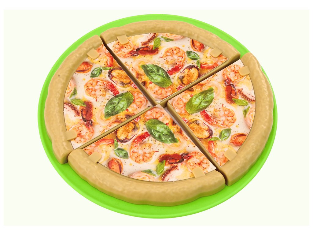 V sadě naleznete: pizzu rozdělenou na čtyři kousky