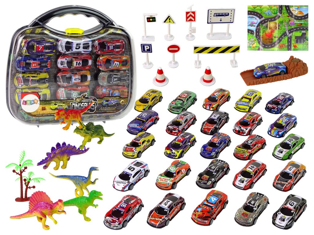 - Naše Sada Sportovní Auta Dinosaury Příslušenství Dopravní Značky Kufřík přináší akci a dobrodružství přímo do vašeho obývacího pokoje