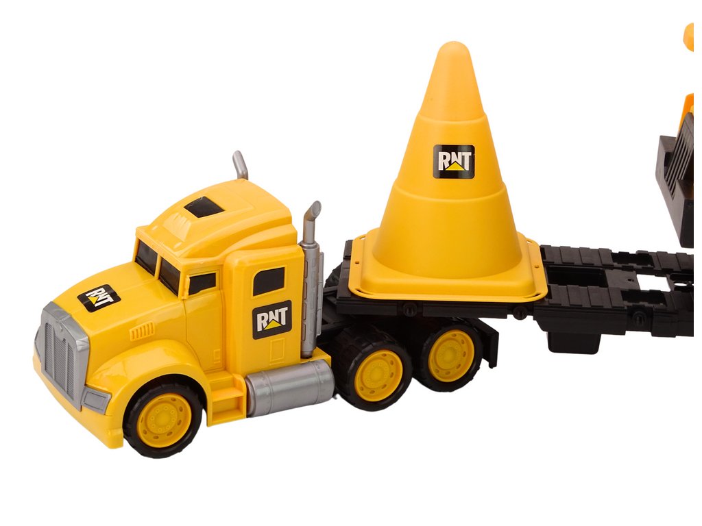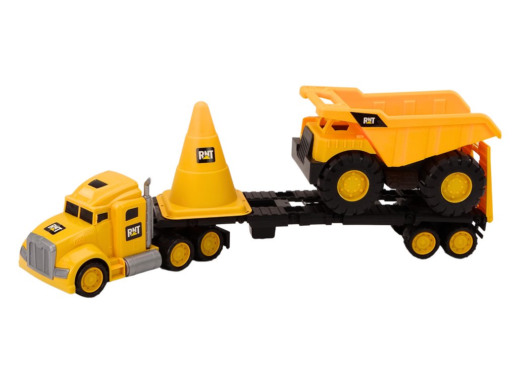 Stavební stroje Sada stavebních strojů Tahač Sklápěč Pohyblivý Žlutý Sada stavebních hraček je skutečným pokladem pro každého malého stavitele! Sada obsahuje žlutý nákladní vůz s odtahovkou, sklápěč, velký žlutý kužel a lopatu s hráběmi, které zajistí hodiny nekonečné zábavy doma i venku