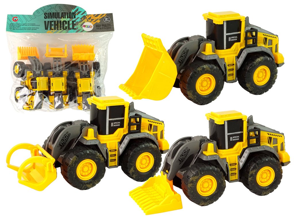 - Tato sada obsahuje tři různé modely strojů, se kterými si děti mohou hrát na stavbu a představovat si práci na staveništi