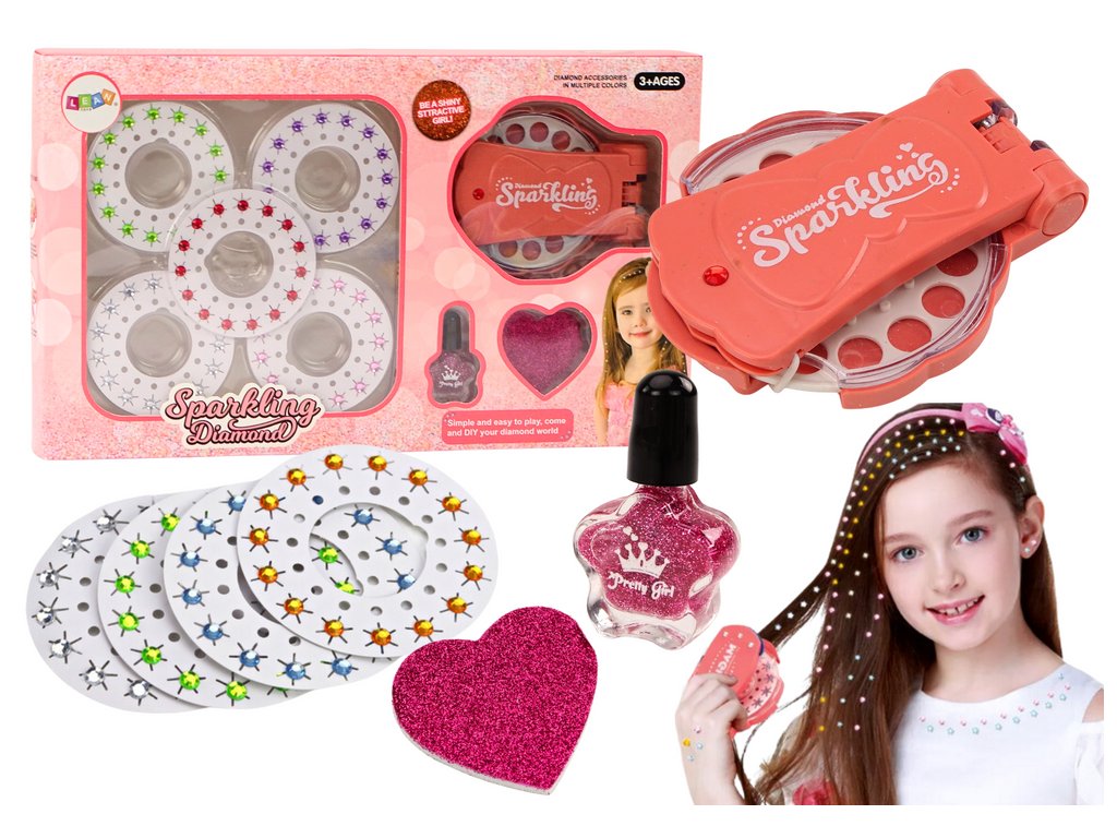 - Zestava pro nanášení vlasových dekorací s diamanty a třpytkami splní sny každé malé stylistky!