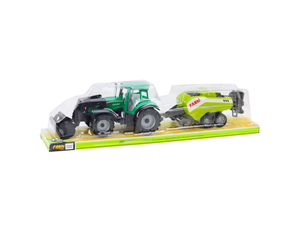 - Tento realistický set kombinuje klasický zelený traktor s pohyblivým nakladačem a přívěsným zemědělským lisem na slámu